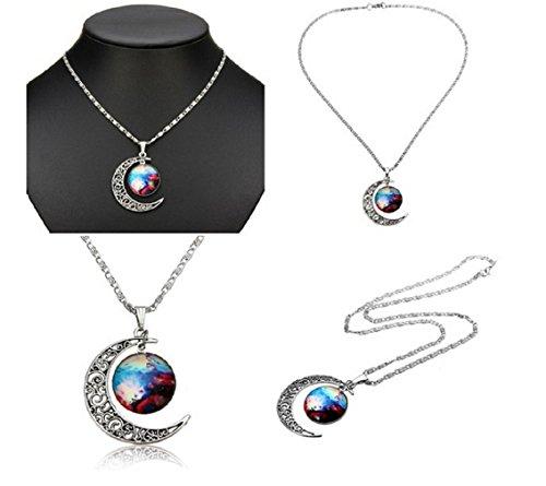 #4 Silver Plated Time Gem Moon Galactic Universe Pendant Necklace by 24/7 store