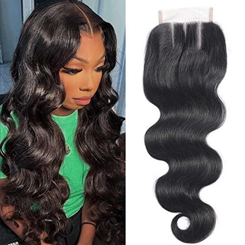 AUTTO Brazilian Virgin Hair Human Hair Lace Closure Body Wave Human Hair Top Lace Closure 4X4 3 Part Closure Naturl Black Color (8"-18") (18 inches)