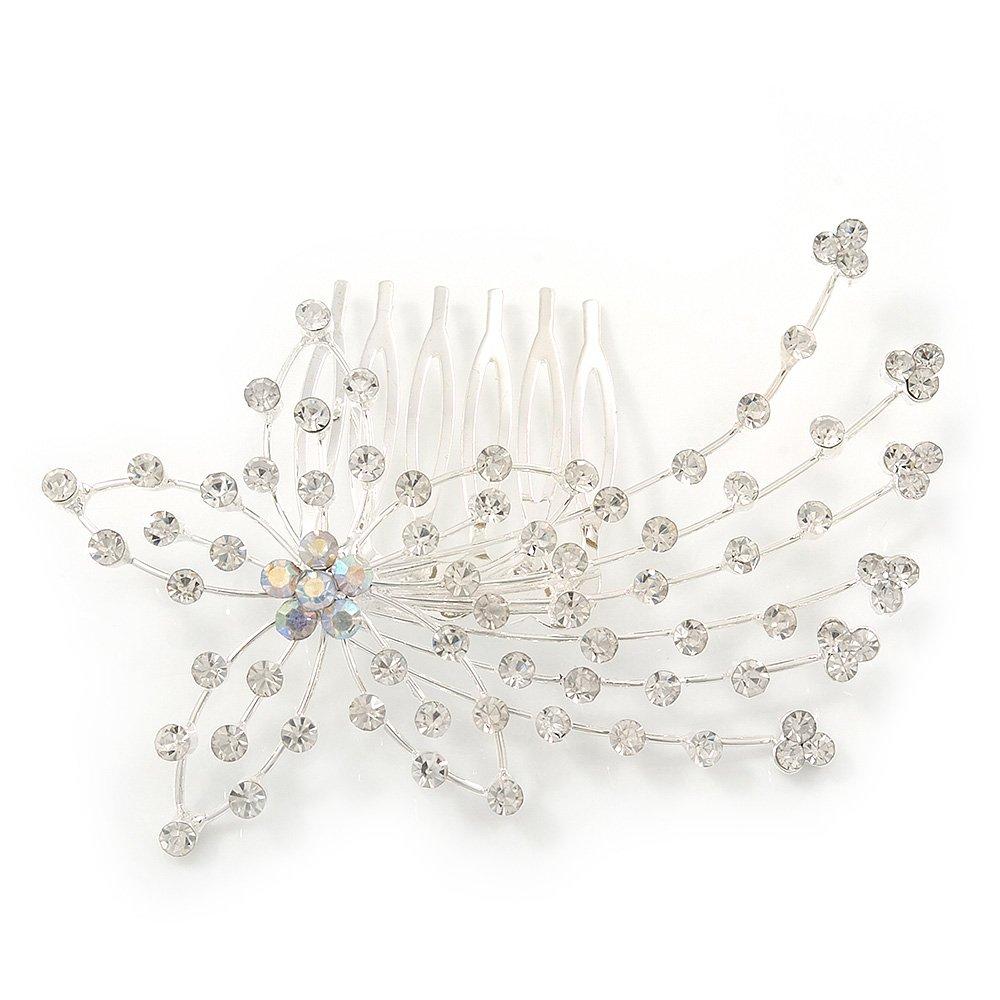 Want picture-perfect hair? Slip this beaut comb into the back of your pony or use it to hold your hair away from your face. Featuring a large silver-tone hair comb with a sculptured open flower design, encrusted with round cut clear Diamante. The comb measures 9cm across and is approximately 6.5cm long. The amount of work and skill that has gone into producing this piece is truly amazing. Perfect as an heirloom to pass on which can be treasured for years to come! Sparkle away no matter the occasion!