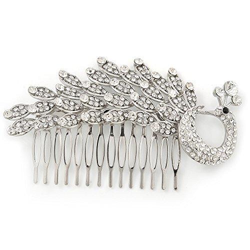 Want picture-perfect hair? Slip this beaut comb into the back of your ponytail or use it to hold your hair away from your face. Featuring a large silver-tone hair comb with a sculptured peacock design, encrusted with round cut clear Swarovski crystals. The comb measures 12cm across and is approximately 7cm long. The amount of work and skill that has gone into producing this piece is truly amazing. Perfect as an heirloom to pass on which can be treasured for years to come! Sparkle away no matter the occasion! The comb weight is about 60g.